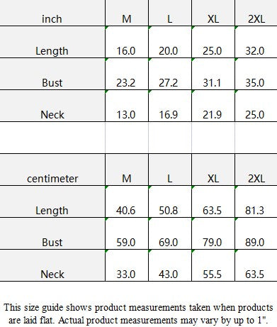 This size guide shows product measurements taken when products are laid flat. Actual product measurements may vary by up to 1".