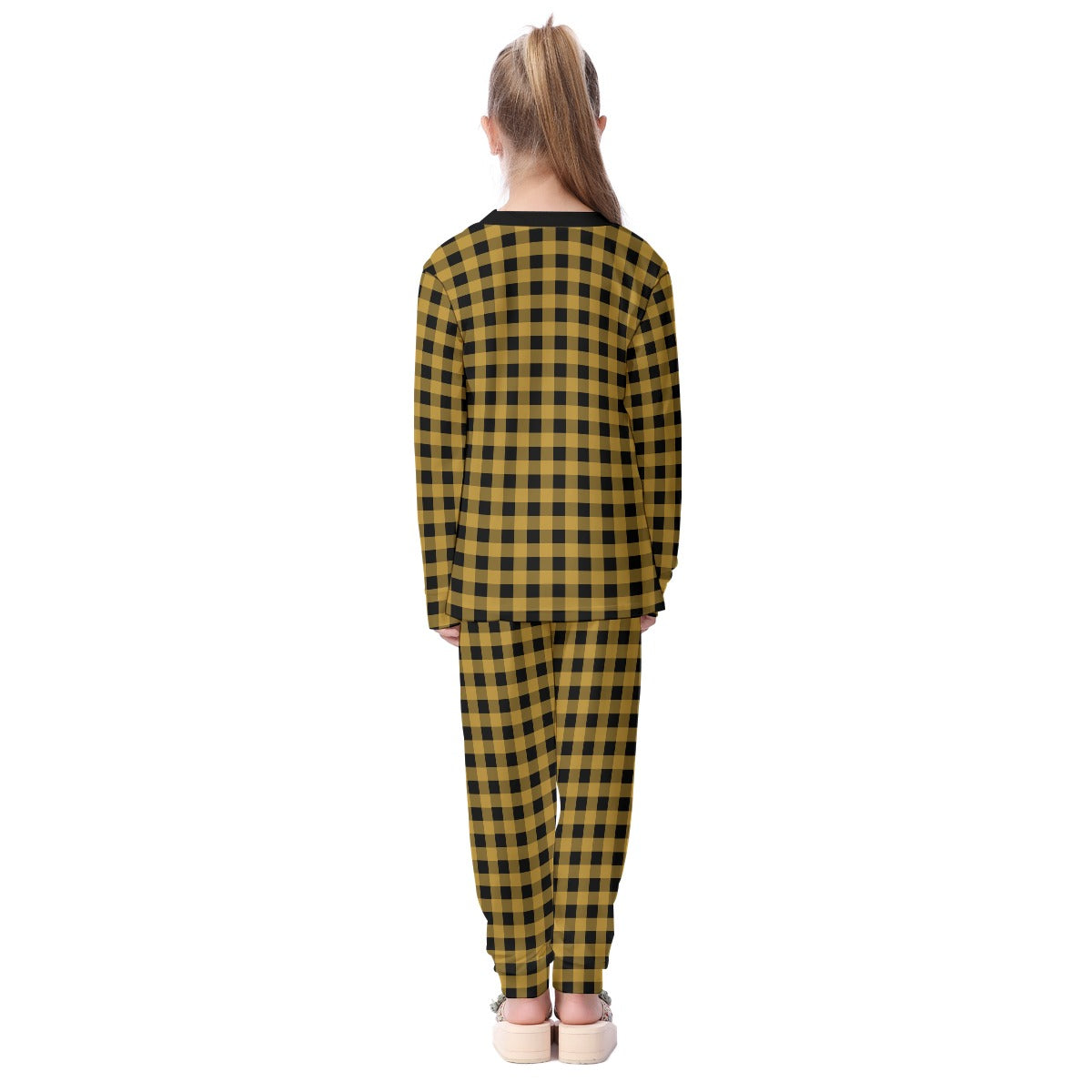 Black and Gold Gingham Kid's Pajamas Set