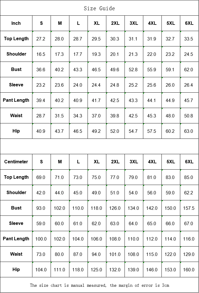Centimeter S M L XL 2XL 3XL 4XL 5XL 6XL