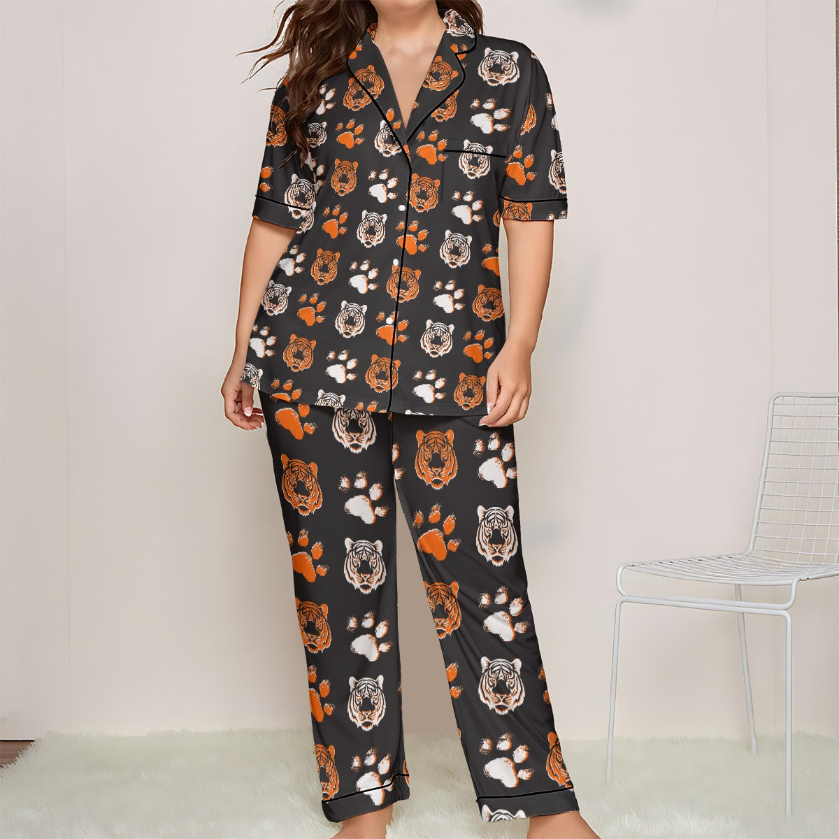 Comfortable and elegant, this women's pajama set is made of soft and skin-friendly simulated silk fabric, allowing you to feel comfortable even in your dreams. The black contrast piping not only adapts to any color but also highlights your elegant temperament.