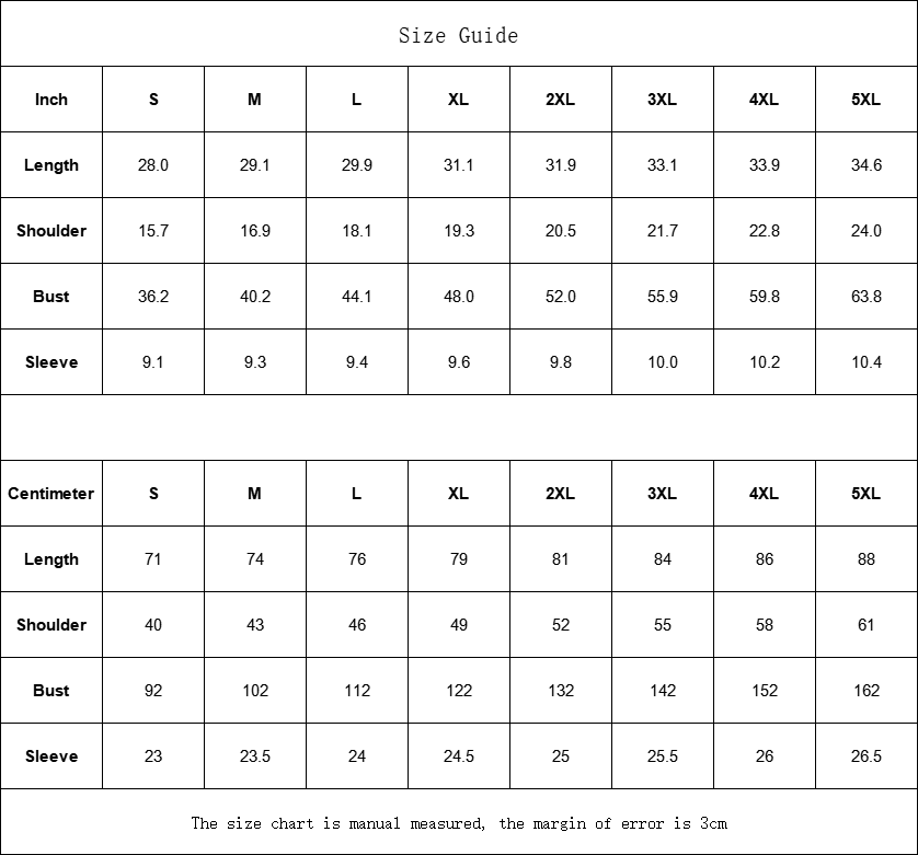 Centimeter S M L XL 2XL 3XL 4XL 5XL